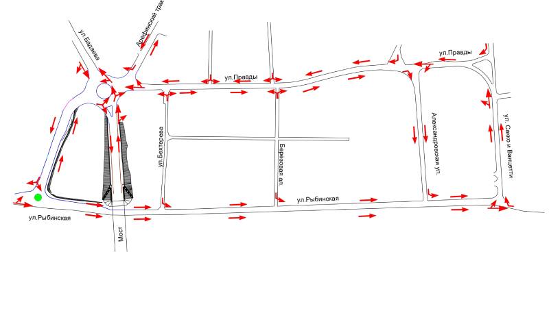 Строители заасфальтировали проезжую часть и один тротуар. Основное изменение в транспортной схеме — это кольцевое движение на левом берегу Волги (смотреть ТУТ).