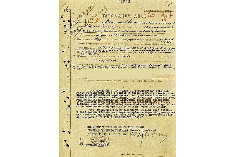 Наградной лист Владимира Максимова
