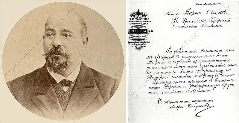 Андрей Галунов, владелец крупнейшей на Среднем Поволжье мельницы / Согласие купца Андрея Галунова участвовать во Всемирной выставке в Чикаго