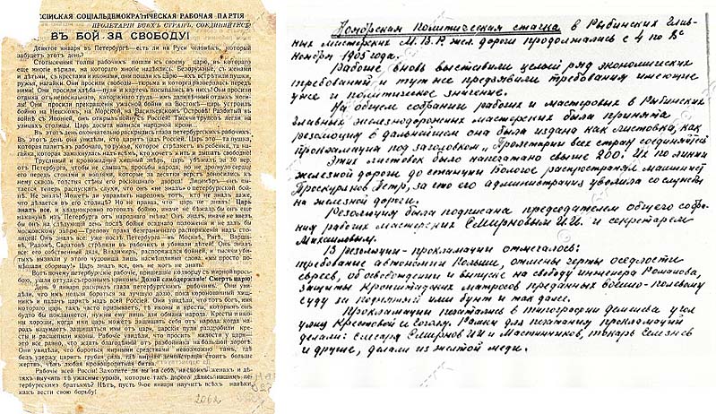 Листовка. В бой за свободу! 1905 г. / Воспоминания железнодорожника Ивана Смирнова о стачке 1905-го в Рыбинске