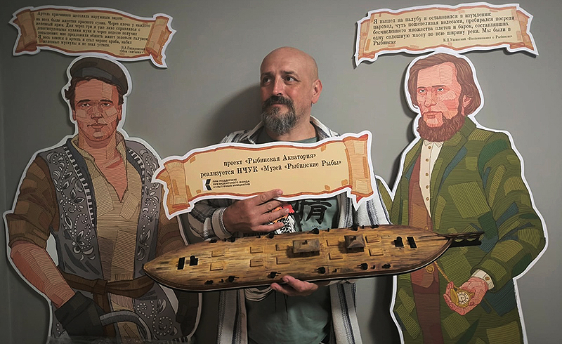 Великий педагог-новатор — точнее, его макет в полный рост — встретит гостей экспозиции на входе. В компании с еще  одной знаменитостью из 19 века — Владимиром Гиляровским, Дядей Гиляем — писателем, публицистом и рыбинским крючником. Колоритную пару героев создал Андрей Балуков, художник-иллюстратор  из Нижнего Новгорода, автор остро модных проектов с хорошо узнаваемым стилем. Однако этим его вклад в проект не ограничивается.