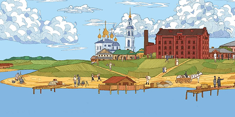 Диджитал-арт нижегородца — анимированная панорама правого берега Рыбинска дополнит макет акватории. Она будет транслироваться на стену как проекция размером 3 на 9 метров. Кадр за кадром, как в мультфильме, перед зрителем пронесутся четыре века становления города: будут появляться новые дома, биржи, вырастать церкви и колокольня собора, засуетится на набережной праздный и рабочий люд. Рыбинск 19 столетия оживет!