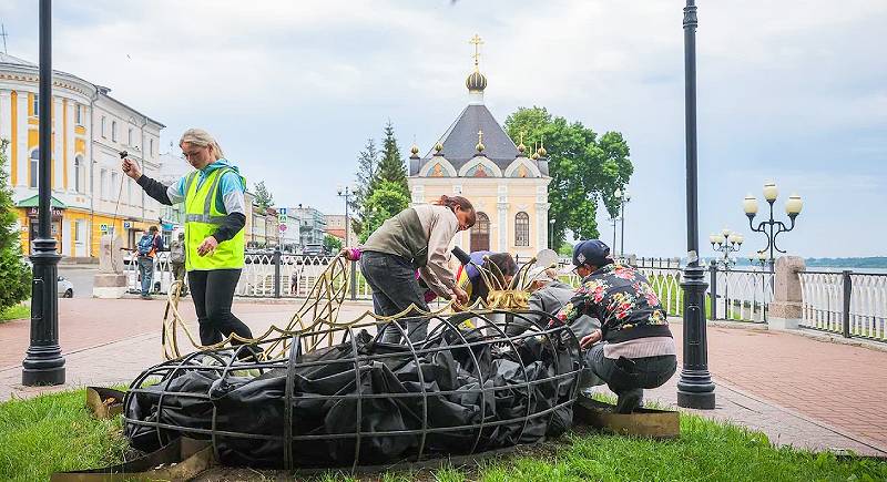 В Рыбинске создают цветочных рыб: «Царь-Рыба» и «Рыба на волне» расположатся по соседству — по обе стороны от Никольской часовни.