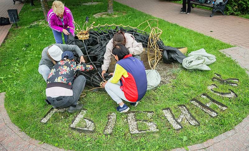 — Внутри конструкции из металла натягиваем укрывной материал, сшиваем его. Забиваем его землей и торфом. Кладем прослойку мха. Ставим дренажные трубы. Фигуру снова укрываем землей. А уже поверх сажаем ковровые растения, — описывает процесс Яна Цыпленкова, начальник производства МБУ «ДЭС».