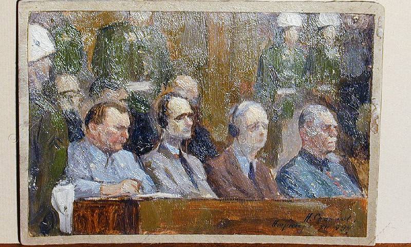 эскиз Николая Соколова «Скамья подсудимых», 1945