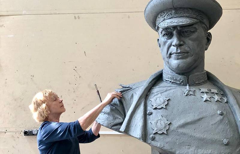 Бюст установят на площади Жукова. Сейчас идет ее ремонт. Автор скульптуры – заслуженный художник России, скульптор Елена Пасхина.