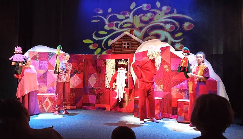 Режиссер Московского театра кукол, лауреат национальной театральной премии «Золотая маска», автор пьесы Наталья Пахомова славится умением по-особому смотреть на хрестоматийные вещи. Она сделала действо приближенным к настоящей, не сказочной жизни. Поэтому, вместо традиционного «жил-был царь», на сцене сперва появились три современные девицы. Зимним вечерком они решили вместо боулинга отправиться на лыжах на туристическую базу «Русская сказка».