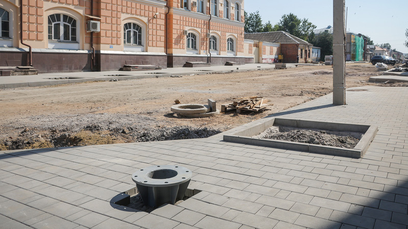 Параллельно с основными работами готовят фундаменты для опор освещения. Уже заказаны чугунные фонари, их привезут в начале сентября. Они будут освещать одновременно и проезжую, и пешеходные части, как на улице Крестовой.