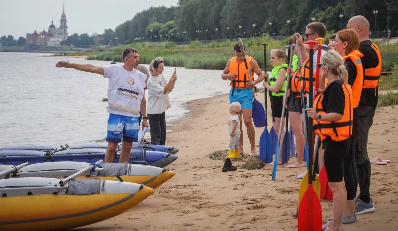 Отмечать большой юбилей спортивно и в кругу друзей – это по ГЭСовски! С песчаного волжского берега у «Огня Славы» в День города в Рыбинске стартовали и к нему же причаливали любители гонок на байдарках, сапах и других плавсредствах: они боролись за призы РусГидро