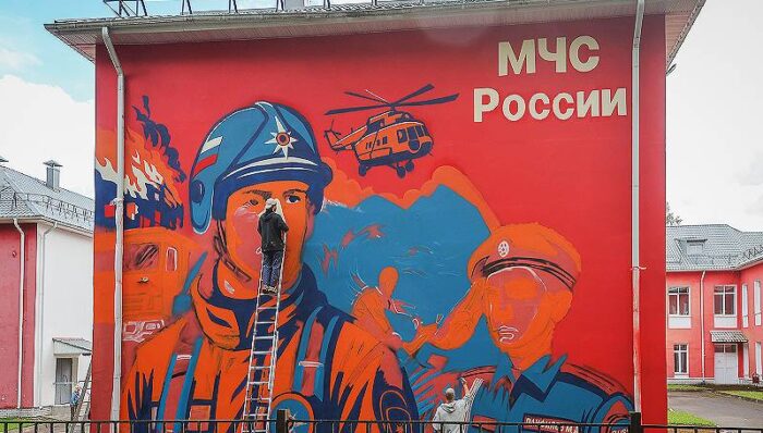 Мурал с сотрудником МЧС украсил школу №11 Рыбинска