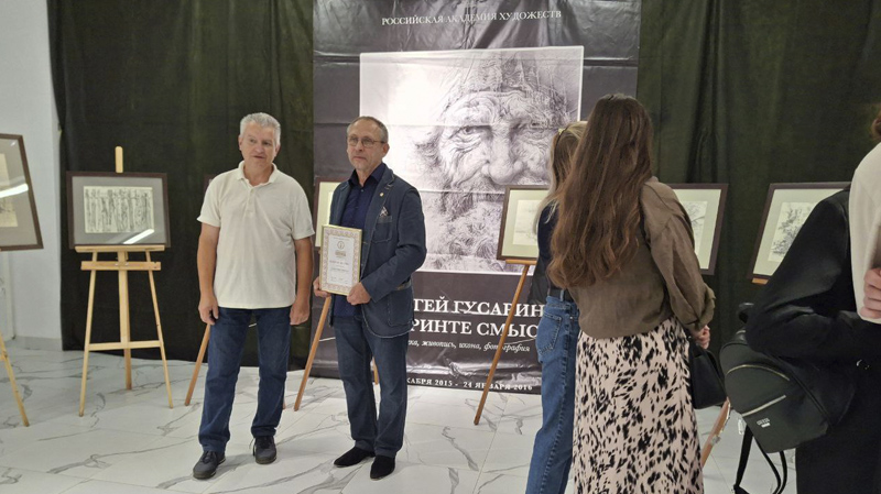 Экспозиции привлекали все новых созерцателей на протяжении всего форума. Он продолжился разговором с идейным вдохновителем и главным организатором большого культурного проекта «Золотой Витязь», народным артистом России, писателем и режиссером Николаем Бурляевым и доцентом ВГИК, киноведом Александром Семенюком.