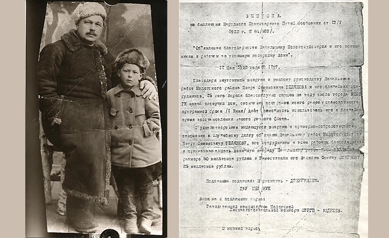 Петр Беляков с сыном Александром, Молога, сер. 1920-х/ благодарность начальнику Мологосудостроя Петру Белякову