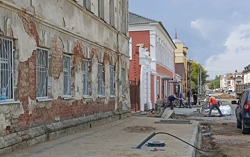 Уже завершены работы на зданиях №7, 21 и 37: причем последний – памятник архитектуры, флигель богатой усадьбы купцов Эльтековых. Приятный песочный оттенок обрел жилой дом №40, теперь и со стороны ул. Бородулина.