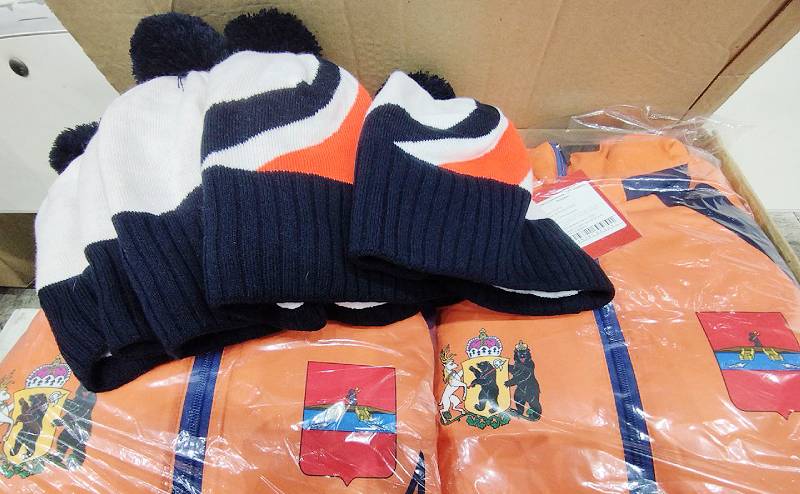 В комплект входит комбинезон для выступлений, костюм разминочный, парадные куртка и шапка. Парадная — значит, для выездов на турниры. Форму шили по меркам каждого спортсмена.