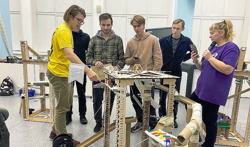 Команды создавали цепные механизмы, выполняющие простую задачу сложным и эффектным способом.