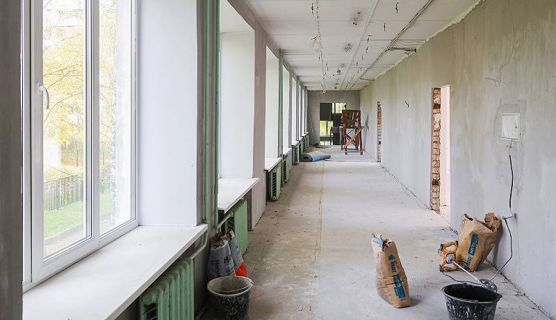 В здании уже заменена электропроводка, системы водоснабжения и канализации, завершают обновлять кровлю. Кабинеты и коридоры готовы под финальную покраску.