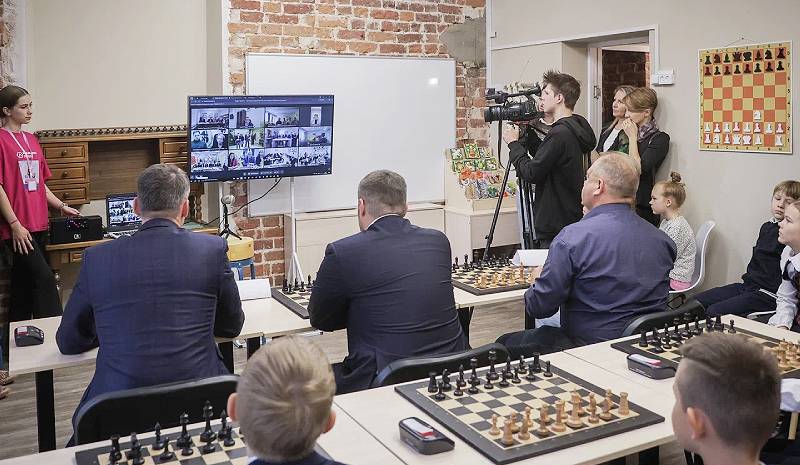 После церемонии открытия гроссмейстер Борис Савченко провел мастер-класс для новых школ по видеосвязи.