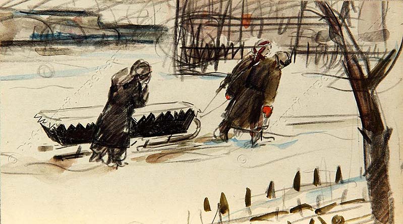 П. М. Кондратьев. Рисунок «Похороны», 1941-1943 гг.