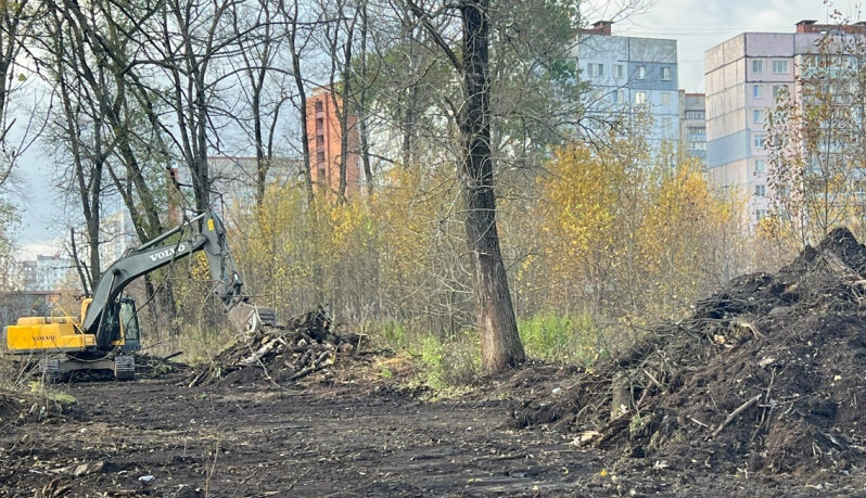 На площадке за школой 5 расчищают пустырь, выпиливают деревья. Подрядчику предстоит оборудовать систему водоотведения, спланировать участок. Эти работы выполнят в этом году, на первый этап выделено 10 млн рублей. Весь проект обойдется в 97 млн рублей.