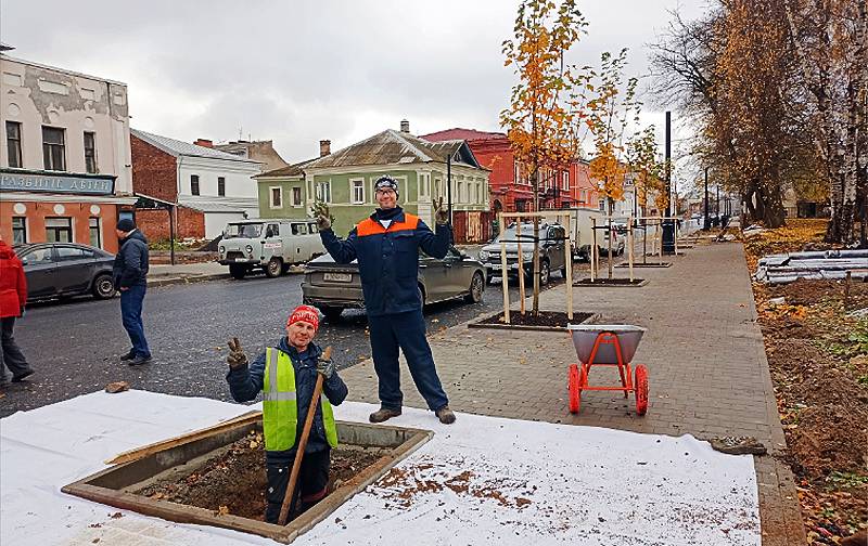Клены и рябины высаживают на ул. Чкалова в Рыбинске