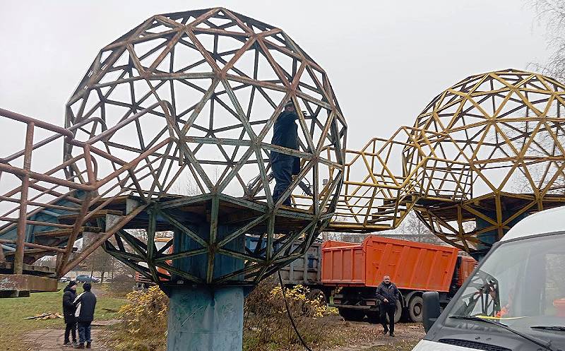В комплекс входят крупные металлические элементы: три шара на опорах, две лестницы, три горки. За время службы они пришли в полную негодность и угрожали жизни и здоровью горожан.