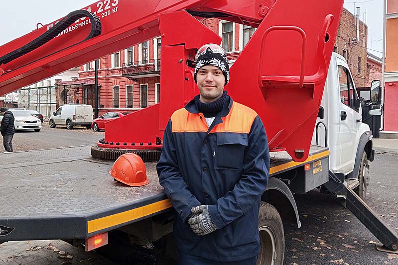 Говорит, что самое сложное в работе на высотной технике – ответственность за жизни людей. Михаил поднимает рабочих на несколько метров над землей, должен постоянно следить, чтобы платформа вышки находилась в правильном положении, чтобы опиленные ветки не сыпались на рабочих.