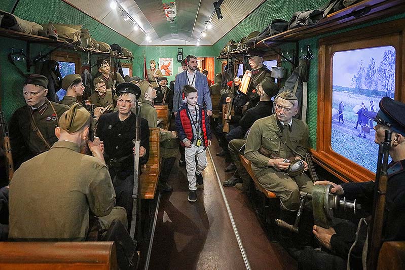 В музее от лица проводницы поезда рассказывается об основных событиях 1941-1945 годов – от обороны Брестской крепости до ужасов концентрационных лагерей, о возвращении советских солдат домой с Победой.