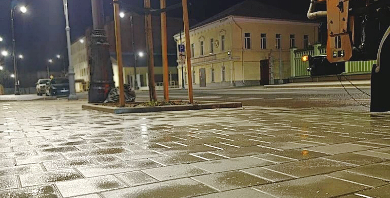 В Рыбинске продолжают мыть улицы, площади, парки тротуары. Специалисты МБУ «ДЭС» работают ночами.