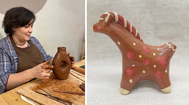 Обыкновенная глина в руках Елены Захаровой превращается в звонкие колокольчики, декоративные тарелочки, милые анималистические фигурки. Мастер передает свое мастерство подрастающему поколению, отмечает, что работа с глиной помогает не только развивать творческие навыки, но и интеллект.