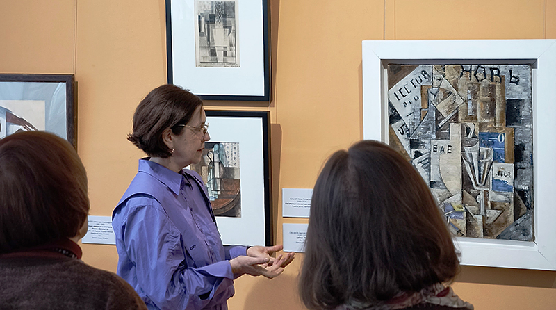 — В экспозиции рядом расположены работы таких разноплановых мастеров как К. Богуславская, В. Бубнова, В. Кандинский, П. Кончаловский, И. Кудряшов (Кудряшёв), П. Мансуров, И. Машков, Я. Паин, А. Родченко, М. Сарьян, В. Степанова, Н. Тархов, Н. Удальцова, В. Чекрыгин, Д. Штеренберг, А. Экстер, — сообщают в музее.