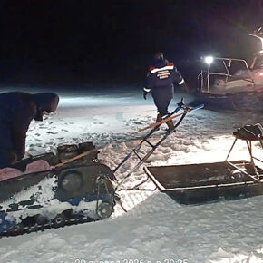 Рыбаки на мотособаке застряли на льду Рыбинского водохранилища