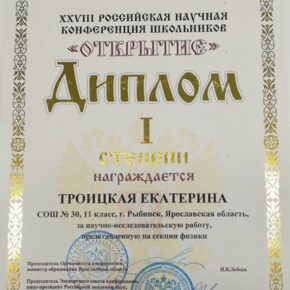 Одиннадцатиклассница из Рыбинска стала лауреатом конференции «Открытие»